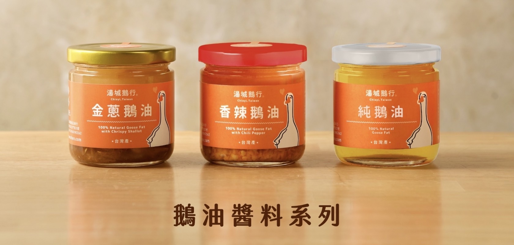湯城鵝行來自嘉義大林的三代養鵝人家,專注打造以鵝為主的精緻品牌。主打商品「金蔥鵝油」,嚴選純淨鵝油與紅蔥頭,香氣濃郁、料理簡單。未來將結合嘉義在地文化,攜手在地業者推出更多精緻伴手禮,讓傳統飲食以嶄新形式走進你我的品味日常。